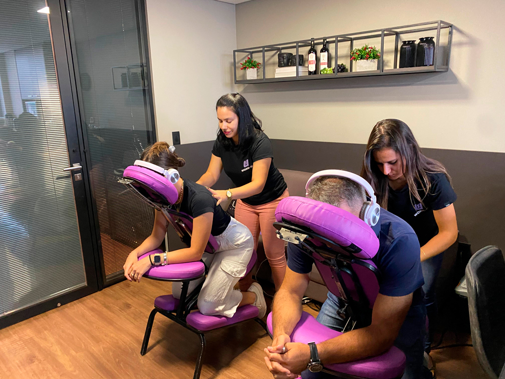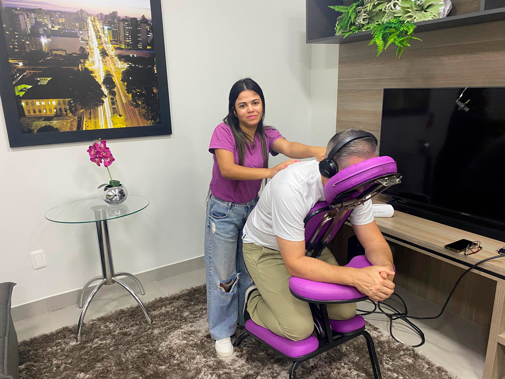 Dê uma pausa ao estresse com nossa Quick Massage, oferecida diretamente no seu ambiente de trabalho. Em sessões de 10 minutos, experimente o alívio imediato das tensões diárias. Ideal para melhorar o bem-estar sem interromper seu dia, nossa técnica foca em ombros, pescoço e costas, proporcionando relaxamento e renovação rapidamente. Transforme intervalos curtos em momentos de revitalização e volte ao trabalho mais relaxado e produtivo!